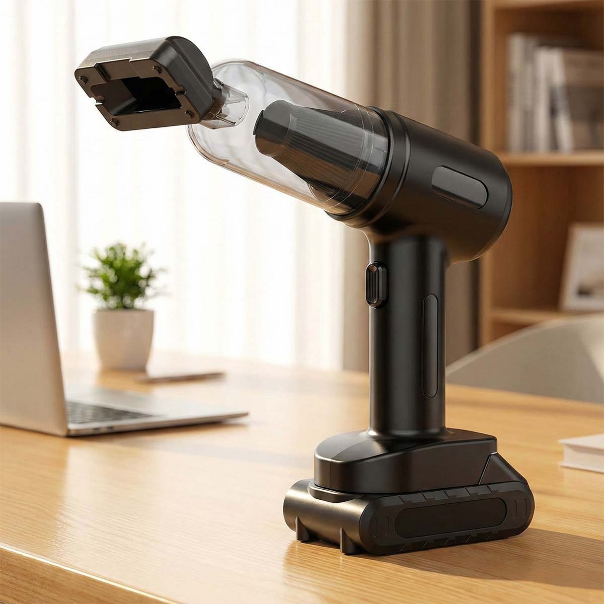 Mantén tu coche, oficina y hogar impecables en segundos con nuestra Mini Aspiradora de Mano Recargable. Con una potente succión de 5500Pa, diseño 100% inalámbrico y múltiples boquillas intercambiables, elimina polvo, líquidos y bacterias sin esfuerzo. Su tamaño ultra compacto la convierte en la herramienta ideal para llegar a cualquier rincón, desde el teclado de tu computadora hasta los asientos del auto. Ligera, versátil y siempre lista para la acción.