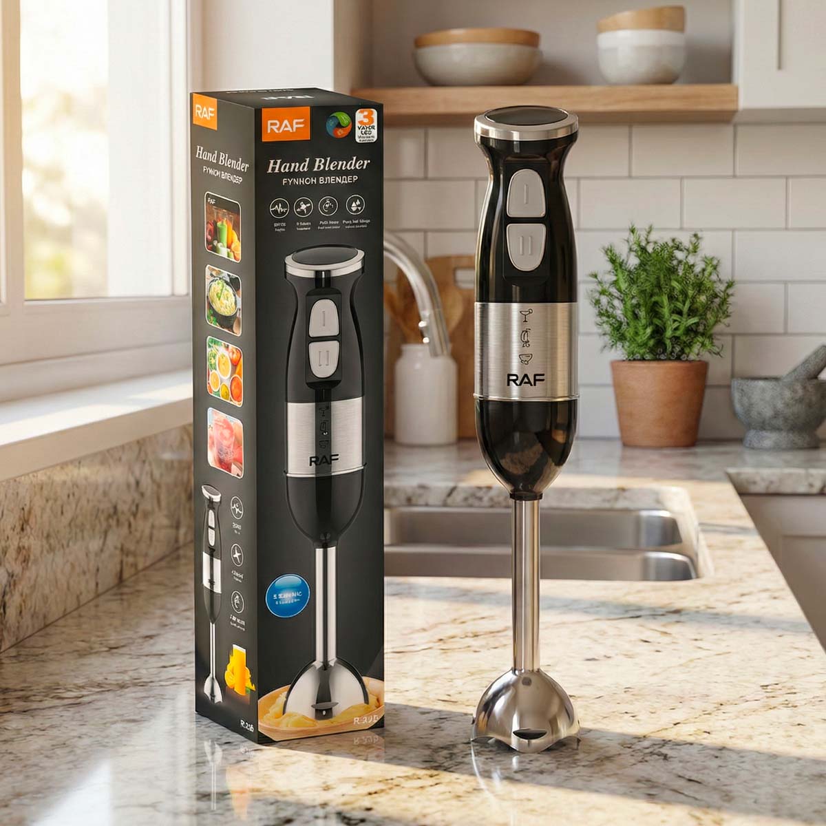 Licuadora de Mano RAF 800W: Potencia y Acero Inoxidable